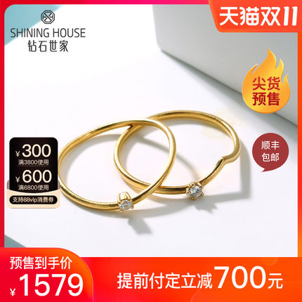 钻石世家小金钻黄金钻戒古法黄金工艺镶嵌钻石新品 1579元(需用券)