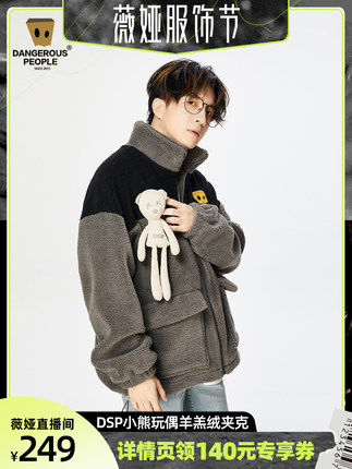 这款Dangerouspeople 玩偶羊羔绒外套,拼色设计,胸前还挂个玩偶,男女同款,羊羔绒质地。目前天猫商城预售特价389,叠加140元优惠券,实付249元包邮。3色可选。这个价格一件外套倒也不算贵,并没有太多明星效应的溢价。