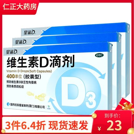 【星鲨】维生素D滴剂胶囊 24粒*3盒(共72粒) 需拍3件,劵后58.9元包邮