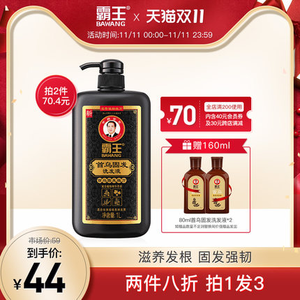 霸王官方旗舰店59元,可领20元优惠券,实付39元到手。官方出品,超值低价。主要原料有:何首乌,桐叶,黑芝麻,侧柏叶等成分。蕴含上等中草药精华配方,使秀发自然乌黑浓密,水润光泽有弹性!