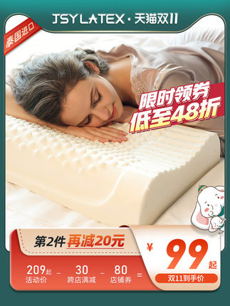 泰国原装进口 JSY LATEX 天然乳胶枕 94%天然乳胶含量 99元狂欢价