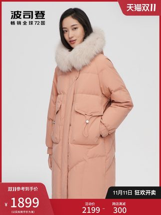 冰洁 2021年冬新款 女士时尚亮面长款过膝羽绒服 两色399元包邮