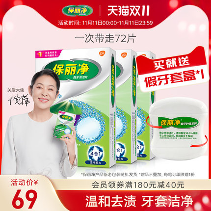 中美史克旗下,保丽净 99.9%杀菌 假牙清洁泡腾片72片 64元包邮(3件167元)