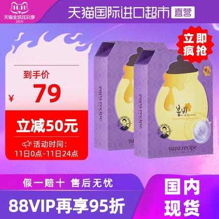 目前天猫国际直营售价¥129,下单立减¥50, 可使用¥5优惠券,到手实付¥74包邮,单品包邮。Papa recipe春雨在韩国一直非常有人气,这款Papa recipe 春雨 紫苏蜂蜜乳糖酸面膜,专研第三代果酸配方,添加紫苏和白苏叶提取成分,疏通收敛毛孔,改善黑头闭口。天丝涤纶膜布,天然不刺激,未添加酒精、化学佤成防腐剂、人工色素、荧光剂等有害成分,安全温和。