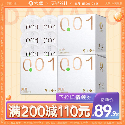 大象 玻尿酸避孕套 001爽滑3只+高潮女生2只+002自由2只 7只装 59.9元狂欢价