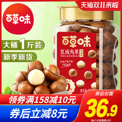 目前商家百草味旗舰店售价¥44.9,还可领取¥8优惠券,到手实付¥36.9包邮到手,300°大开口,淡淡奶香还原本味,酥脆可口。夏威夷果又叫澳洲坚果,果仁香酥滑嫩可口,有独特的奶油香味,是世界上品质较佳的食用坚果,素有“干果皇后”、“世界坚果之王”之美称 ,营养丰富,含油量 70% -79%, 尤其以富含不饱和脂肪酸为特点,以油酸和棕榈酸为主,蛋白质9% ,还含有丰富的钙,磷 ,铁,维生素B1、B2和人体必需的8种氨基酸。