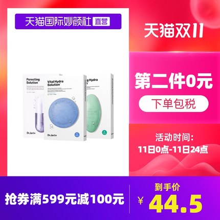 优惠方案:天猫国际目现售价89元,满2件打5折,下单7件,页面下领取满599-100优惠券,以及满199减15元券。88VIP95折,到手实付186.67元包邮包税,折合26.66元/件。Dr.Jart+ 面膜是在韩国也非常受认可的一款面膜,薄透的面膜纸,据说是超细腻纤维,比一般纤维细150倍,能促进精华液吸收。而且加上含有医学保湿成分,以及芦荟的镇定保湿效果,非常适合冬季干燥缺水肌肤和夏季晒后修复,抵抗外界对肌肤损坏,补水效果很好。绿色适合抗敏舒缓镇静肌肤,敏感肌妹纸特别适合,精华多且不粘稠,吸收效果好,脸部服帖,也更适合干皮肤。