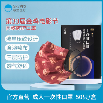 金鸡电影节同款,Skypro 弓立 一次性印花防护口罩 50只独立装 2色 9.9元包邮