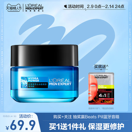 【欧莱雅】男士补水保湿强润霜50g 券后58.9元包邮