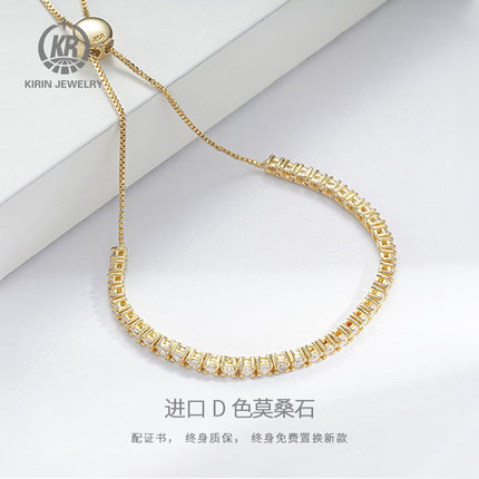 KR 群镶莫桑石钻手链925银扣松紧可调节ins小众设计黄金色 89元(包邮、需用券)