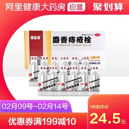 马应龙 麝香痔疮栓 痔疮膏药 12粒 清热解毒/消肿止痛/止痒止血 21.5元包邮