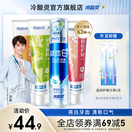 冷酸灵旗舰店44.9元,可领15元优惠券,实付29.9元到手,赠牙刷*2支,想吃就吃,极地白是冷酸灵的高端系列牙膏,泵式按压款式使用更方便。