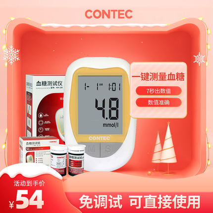 天猫contec快麦专卖店50元,可领20元优惠券,实付30元到手,第1款此价,微量采血 大屏幕显示 7秒出值,包含50次耗材。