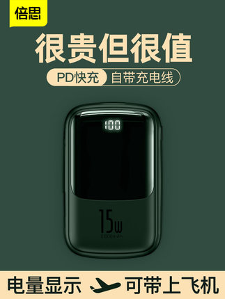 小巧便携 自带充电线~ 倍思 Q电 1万毫安充电宝 PD快充移动电源 券后69元包邮