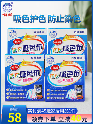 国货老牌出品,新一代吸附技术,仅需一张让你免去彩衣混洗染色大烦恼,使用方法简单,居家好帮手。天猫白猫居家日用专营店售价¥98,可领¥65优惠券,实付¥33包邮,规格为24片*4盒,单次洗衣放1-2片即可。