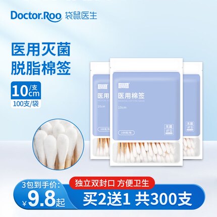袋鼠医生 医用棉签 200支/盒*2件,医用灭菌级,脱脂棉头,紧致绵密,触感柔软舒适,不易掉絮脱落。双头设计。目前天猫商城特价14.2元,叠加5元优惠券,实付9.2元包邮。