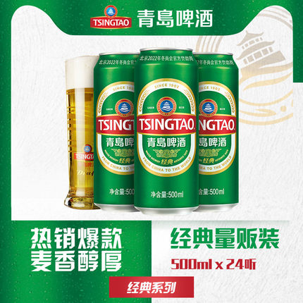 青岛经典10度屁精,传承百年酵母,上等啤酒花,麦汁浓度10°P、酒精含量4.0%。酒液清澈透明、呈淡黄色,泡沫细腻洁白、麦香浓郁,酒体沉厚柔和,香醇爽口。青岛啤酒官方旗舰店129元,可领20元优惠券,实付109元到手,规格500ml*24听。