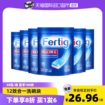 神价格 德国原装进口 Fertig 12效合一 洗碗机专用洗碗粉块 300g*6袋 61.76元包邮