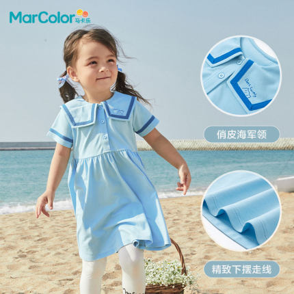 MARCOLOR 马卡乐 女童海军领可爱连衣裙(90~140码)3色49元包邮