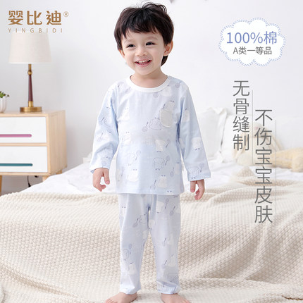 【婴比迪】73cm-130cm可选、全尺寸一个价!买两件更省!精选绵绸面料,A类品质检测报告,无骨工艺、更舒适、男女宝宝款都有,吸湿排汗,轻薄透气,不褪色,外穿防蚊,会呼吸的家居服。