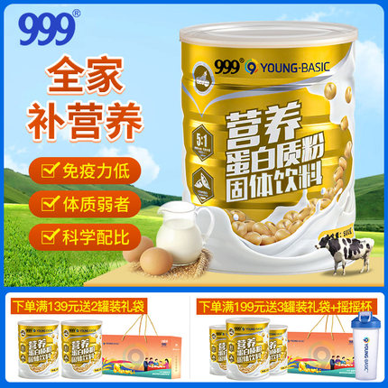 35年央企大牌,999品牌,动植物双蛋白,黄金配比,非转基因,提高全家免疫力,男女老少都能喝。目前天猫商城999保健食品旗舰店售价¥129.9,叠加¥100优惠券,实付¥29.9包邮