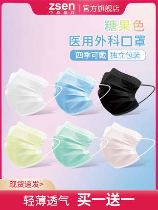 ZSEN 中森医疗 一次性医用外科口罩彩色60片独立包装 9.9元包邮(买1送1)