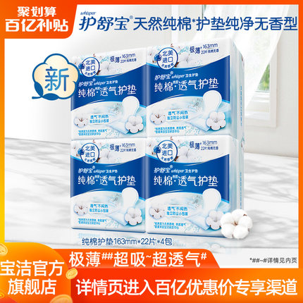 whisper 护舒宝 天然纯棉 透气护垫卫生巾 163mm*22片*4件48.9元包邮