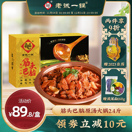 老诚一锅 筋头巴脑 牛蹄筋带筋炖牛肉原汤火锅 2.4斤( 赠日历+宽面)79.8元包邮