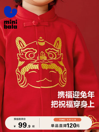 迷你巴拉巴拉&非遗传承人张忠强联名款 儿童新年加绒套装(80~110cm)99.9元包邮
