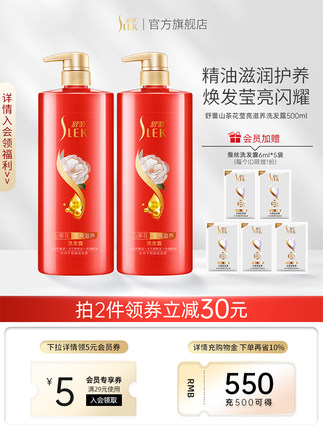 【¥37.1】舒蕾 山茶花洗发水500ml*2瓶+赠品
