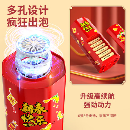 赠送4张DIY贴纸,两瓶泡泡液,新年必备,一键开启欢乐无限,全自动上水持续出泡泡。过年不能放烟花,那就玩烟花泡泡机【赠运费险】
