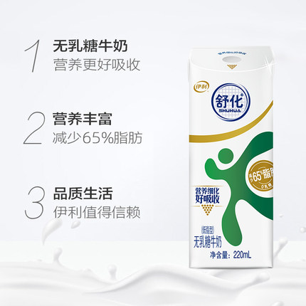 伊利 舒化无乳糖低脂牛奶 220ml*24盒59.4元包邮
