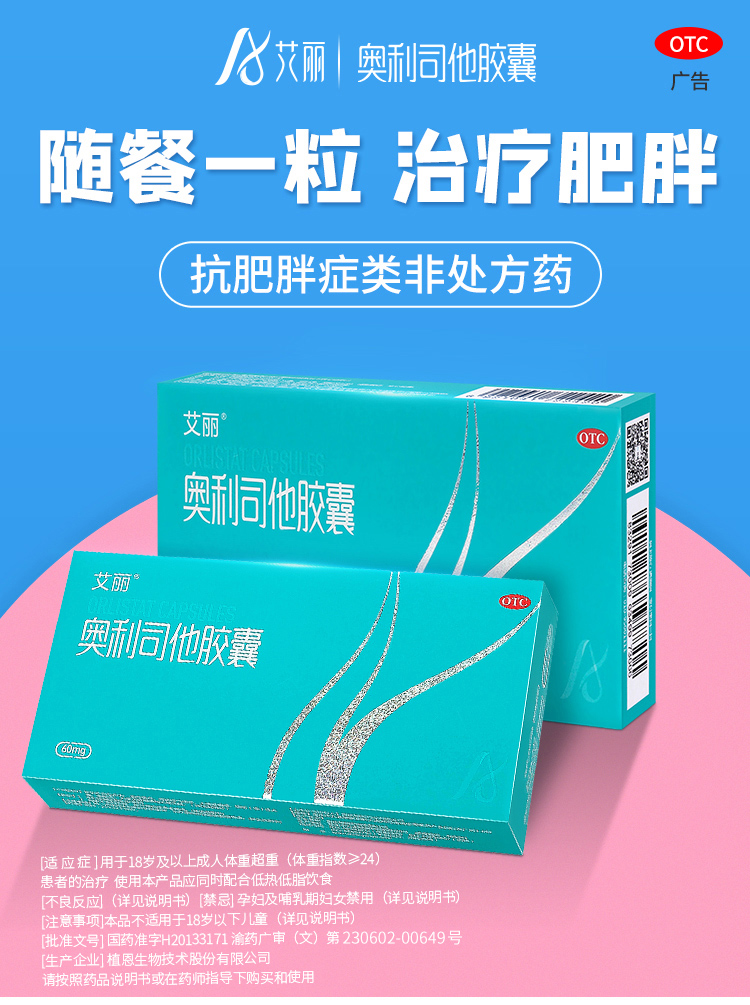 国药准字OTC减肥产品,排油减脂,不抑制食欲,不导致腹泻,通过减少人体对脂肪的吸收。奥利司他(Orlistat)为非作用于中枢神经系统的肥胖症治疗药,能够减少肠腔黏膜对膳食中脂肪,阻止油脂吸收促进排出,从而达到减肥的效果。这款艾丽奥利司他胶囊,每粒含奥利司他60mg,每日餐后服用,能够减少油脂吸收,加速减肥。