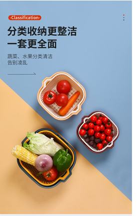 大容量双层设计,食品级PP材质,光滑无毛边~结实耐用,沥水收纳,简单一步到位,蔬菜、水果分类清洁,告别凌乱,是你厨房的好帮手!