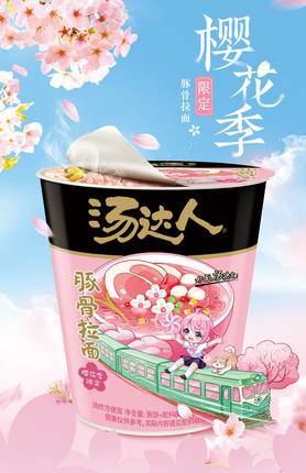 樱花季限定版,颜值即正义!统一 汤达人 豚骨拉面 ,优选富含骨质的猪脊骨、腿骨,搭配秘制酱汁,浓稠胶原口感,浓郁且富有层次感,内配日式叉烧肉,3:7黄金肥瘦比例,秘制唐辛子,惊艳味蕾,低温油炸面饼,健康美味。