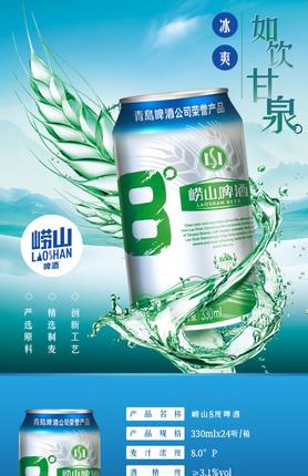 青岛崂山啤酒 崂山8度330ml*24听 券后39.9元包邮