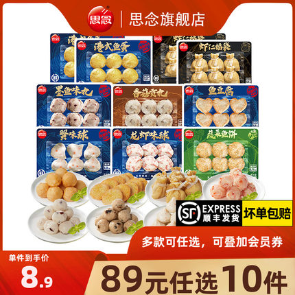蟹味球、鱼豆腐、龙虾味球、蔬菜鱼饼、墨鱼味丸、港式鱼蛋等7种任拍10件,折¥4.9/袋。比超市划算很多~甄选食材,真鱼肉添加,真空锁鲜,锁住新鲜美味,鲜爽弹牙。刚好涮火锅吃
