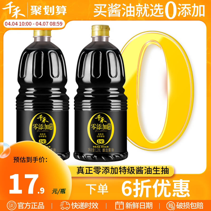 千禾 零添加酱油御藏本酿180天特级生抽 1.28L*2瓶 33.8元包邮(16.9元/件)
