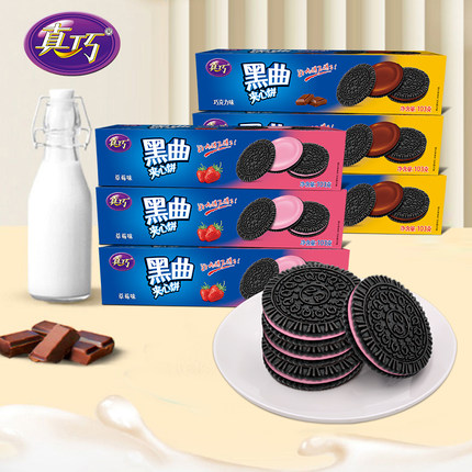 超市同款一盒四五块的。一盒里有2小包,巧克力味、草莓味2种可选。薄脆巧克力饼干+内里细腻香甜夹心,不甜不腻,口感刚刚好~香脆解馋,拿来当午后小点心正合适!