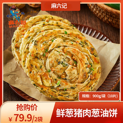 麻六记 酥脆速食鲜葱猪肉葱油饼 900g*2袋69.9元包邮