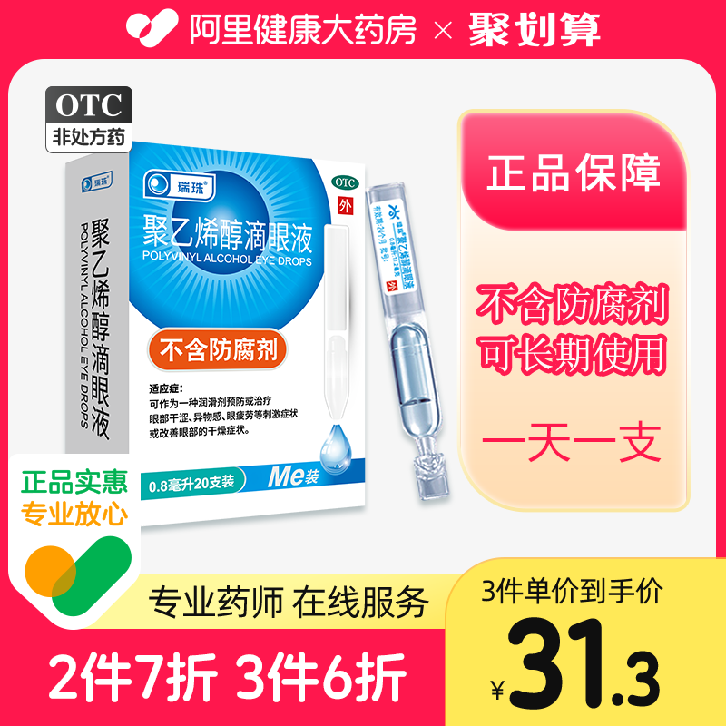 瑞珠 聚乙烯醇滴眼液 0.8ml*20支*3件 78.96元包邮(折26.32元/盒)