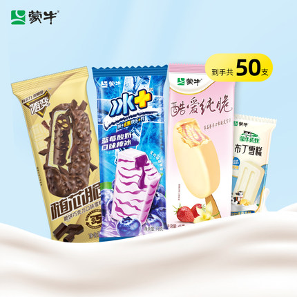 蒙牛 冰淇淋雪糕50支组合(优牧布丁15支+酷爱纯粹5支+蓝莓酸奶10支+随芯脆20支)99元包邮