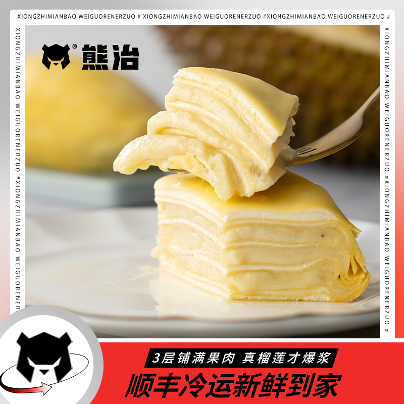 3层榴莲果肉,榴莲果肉达40%,手工制作千层皮,高温烘烤30秒内烙起,口感Q弹软糯,入口即化。目前天猫商城熊治旗舰店400g/盒售价¥79.8,可使用¥40优惠券,实付¥39.8包邮。