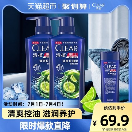 清扬男士去屑清爽控油洗发水500g×2 100g,专为男士设计,双重去屑成分,提升头皮自身净屑力,清爽控油型:含有薄荷醇、茶树和人参精华,帮助抑制头痒、油腻等问题。