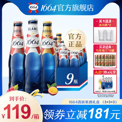 Kronenbourg 1664 果香桃红啤+柑橘白啤+百香果啤酒330ml*9瓶 送冰川杯*2个79元包邮
