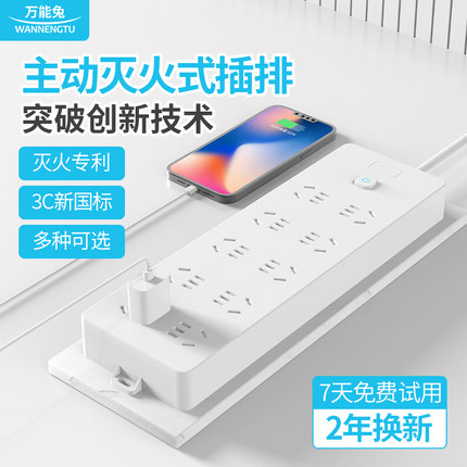 3C新国标,一体铜条,阻燃外壳,内置绿色环保灭火剂,主动灭火。目前天猫商城万能兔旗舰店售价¥21.9,叠加¥5优惠券,券后实付¥16.9包邮,特惠款此价,其余略贵。