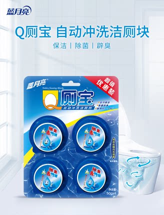 规格50g*4块*3组 12块装,目前商家蓝月亮官方旗舰店目前售价¥55.5,领取¥15优惠券,到手实付¥40.5包邮,入手好价。蓝月亮 Q厕宝 自动冲洗洁厕剂,富含高效活性成份,每次冲水时,含有洁净因子的蓝色液体随水而出,自动清洁厕盆,同时形成保护膜,有效防止污垢再次附着;松木清香,迅速消除异味,保持卫生间持久清新。