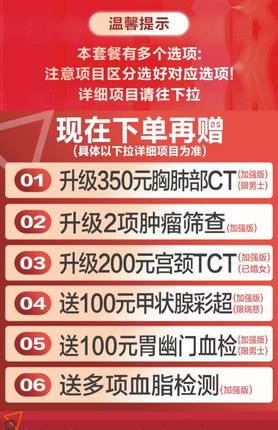 【下单即送6项】一般检查,内科,外科,妇科常规,白带常规,宫颈刮片,心电图,血常规,尿常规,肝功,肾功2项,空腹血糖,胸部X光(不出片),腹部彩超。