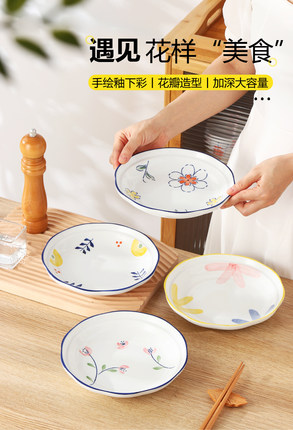 釉下彩,宋青窑 ins风家用菜盘日式陶瓷餐盘 8英寸*4个 需拍4件,券后27.8元包邮