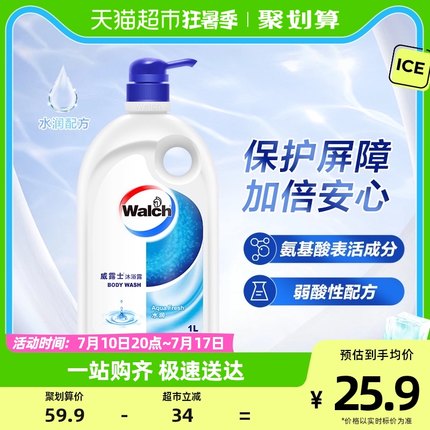 威露士 水润氨基酸沐浴露,经典配方,添加氨基酸成分,温和洁净,不粘腻,深层清洁,舒缓肌肤,滋润保湿,威露士去味因子,去除汗味。聚划算团购价¥ 59.9,下单立减¥ 34,领取3元优惠券,实付22.9元包邮